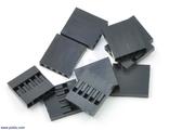 These five-pin housings work with our wires with pre-crimped terminals to let you quickly make custom cables that mate with various 0.1"-spaced connectors, including male or female headers and solderless breadboards. They are sold in packs of 10.