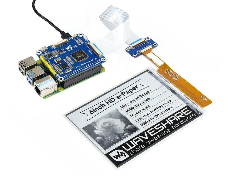 Transform your Raspberry Pi experience with the 1448×1072 high definition, 6-inch E-Ink display HAT. This innovative screen offers a sharp, paper-like reading experience that is easy on the eyes.