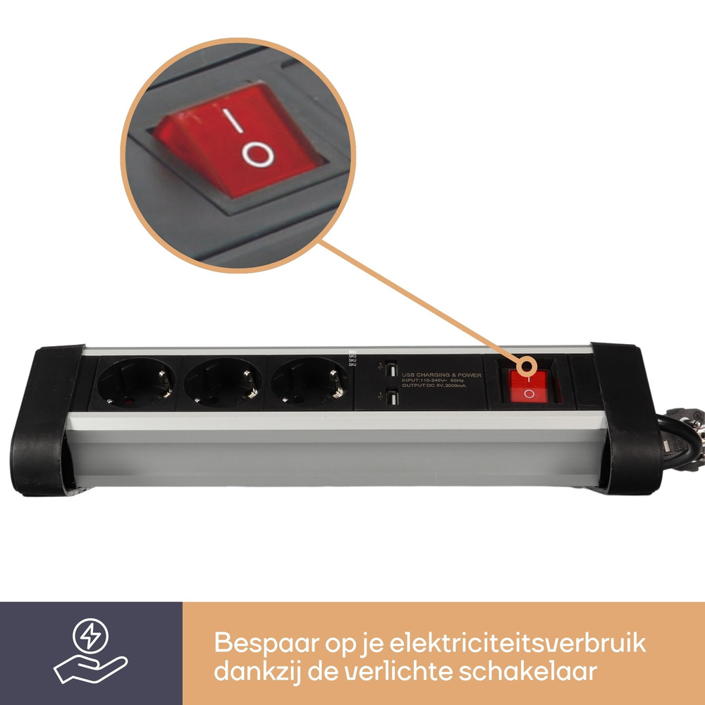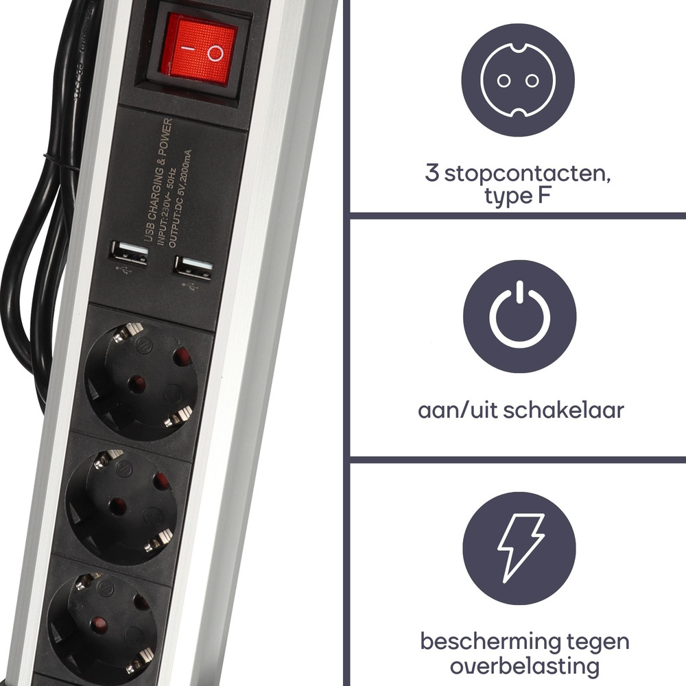 De dubbele USB-poorten bieden snelle en betrouwbare oplaadmogelijkheden. Of u nu een smartphone of tablet van stroom wilt voorzien, deze stekkerdoos heeft u gedekt.