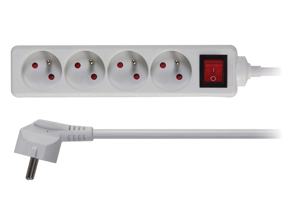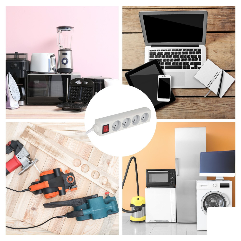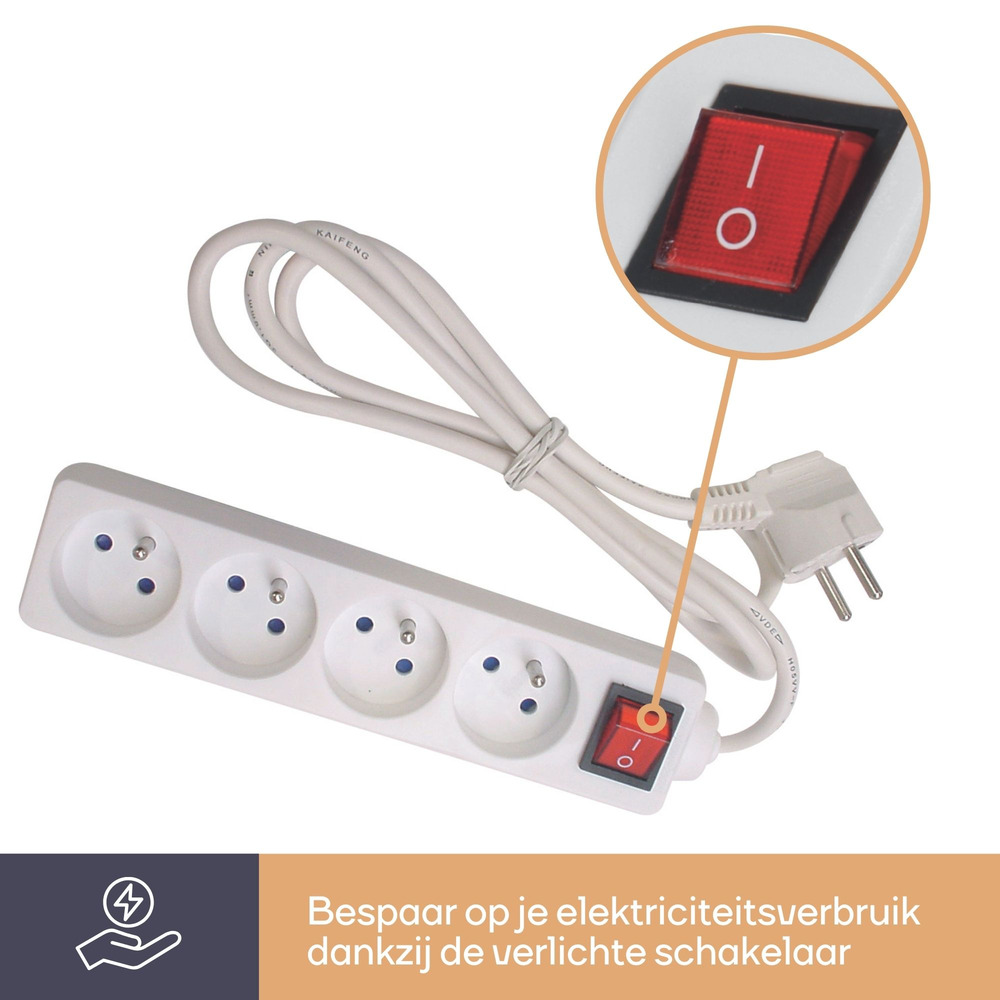Experience seamless connectivity with the 4-voudige stekkerdoos met schakelaar, equipped with a robust 1.5-meter cable in classic white. This power strip ensures efficient energy distribution, perfect for multiple device setups.