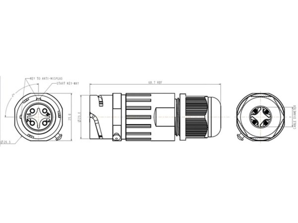 The 4P Connector is meticulously engineered to offer seamless connectivity. With water-resistant IP68 certification, it guarantees robust performance in challenging environments, making it ideal for outdoor LED lamps, LED displays, and servomotors.