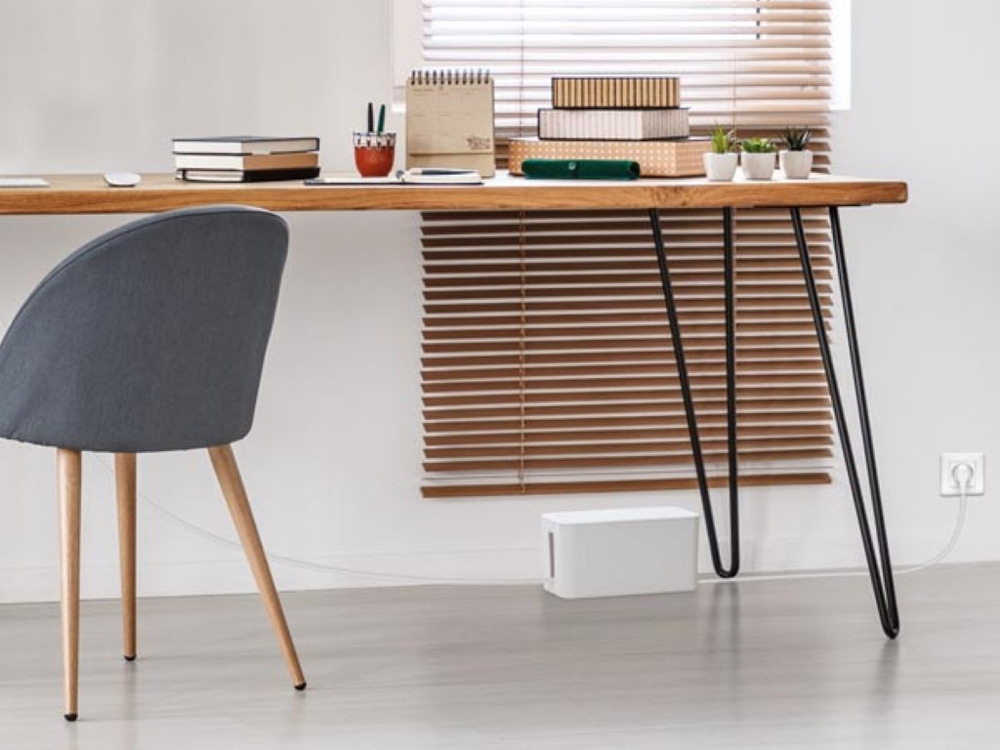 The integrated cable box keeps your workspace tidy, reducing clutter and enhancing safety. With five individual outlets, it ensures versatile power options for your essential gadgets and appliances.