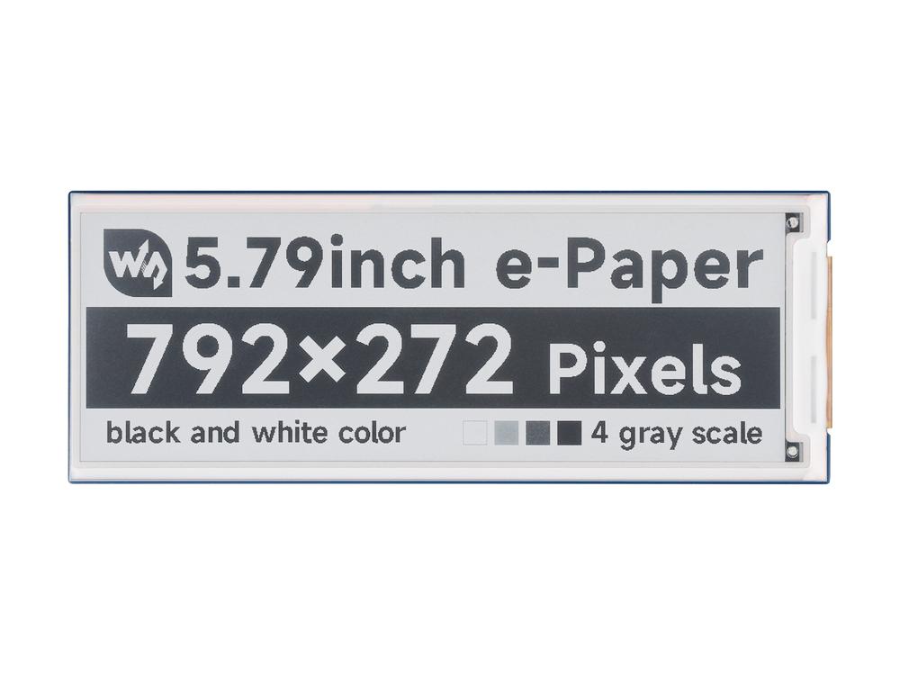Experience stunning clarity with the 5.79-inch e-Paper display module, offering a 792x272 resolution that ensures text and images are vividly rendered in crisp black and white. Its e-ink display technology mimics the look of paper, making it perfect for long reading sessions or displaying information in bright environments.