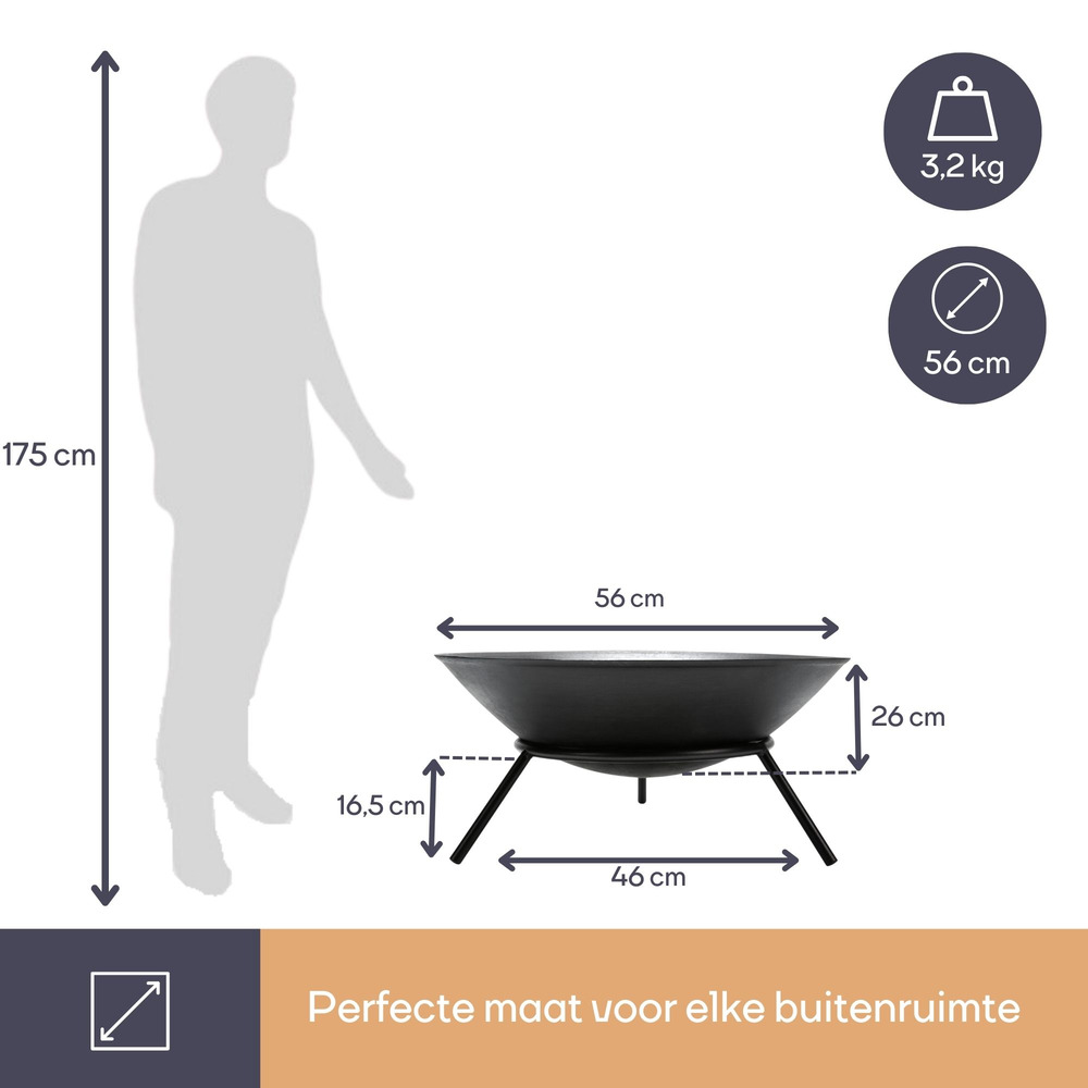 Experience captivating warmth with a 56 cm diameter fire bowl, designed to enhance any gathering at home or during a barbecue party.