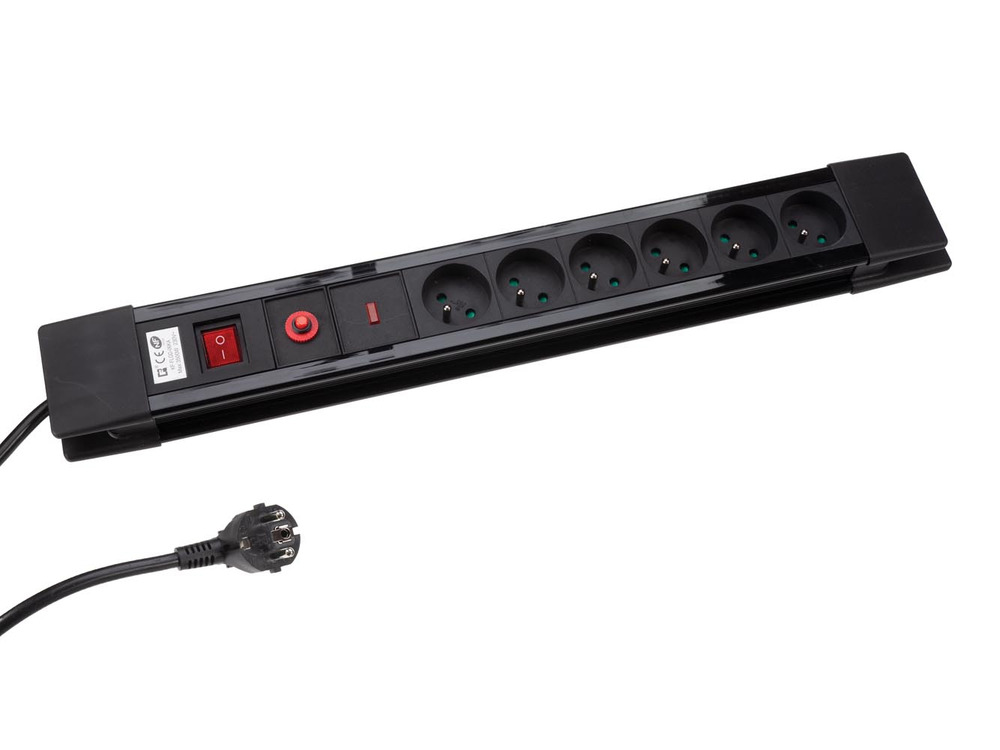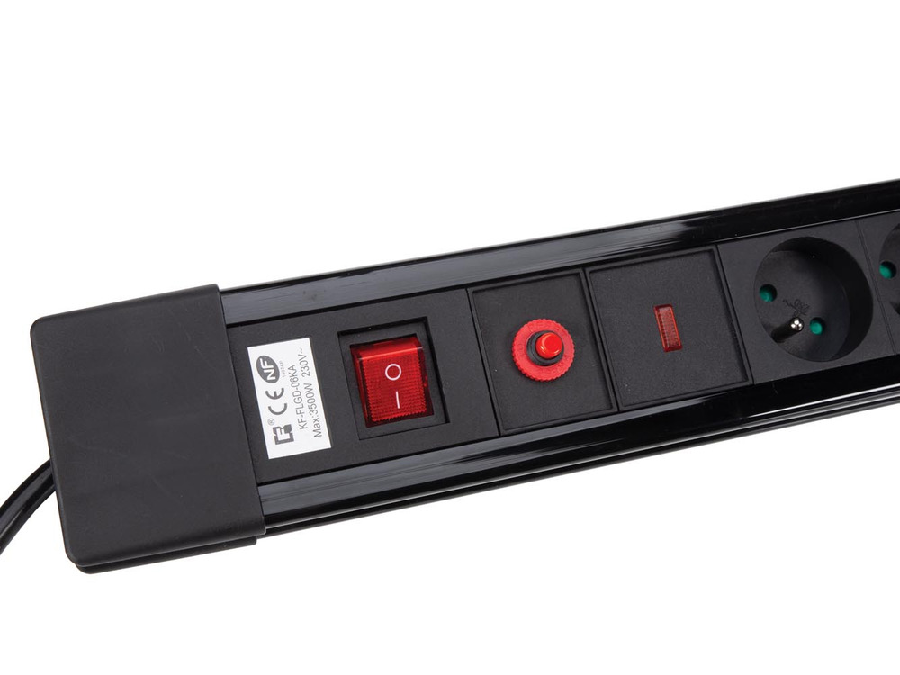 The 6-voudige stekkerdoos is engineered for safety and reliability, featuring surge and lightning protection with penaarde for optimal grounding.