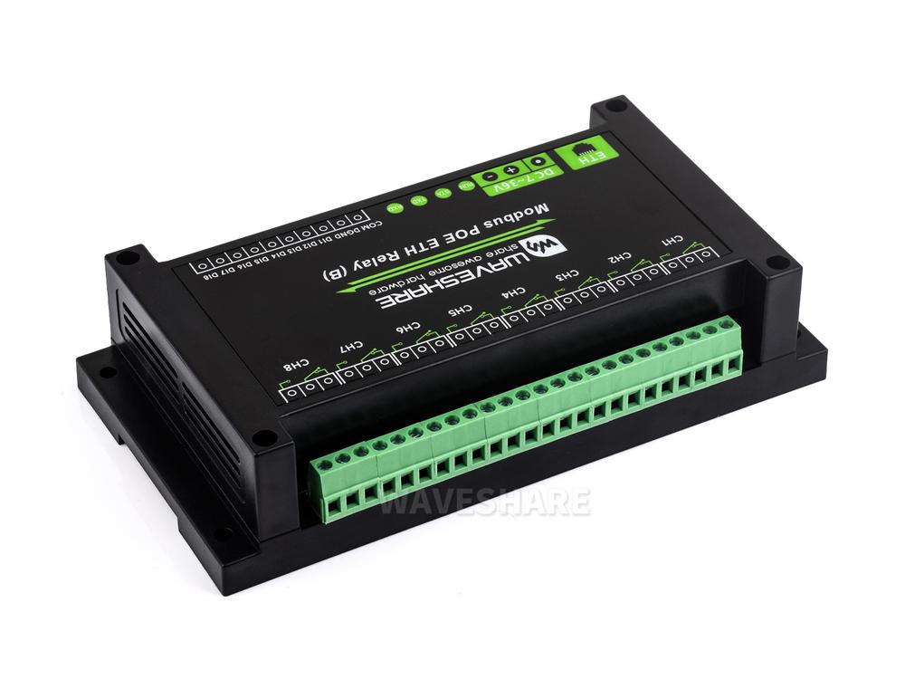 The 8-channel Ethernet Relay Module (B) offers seamless integration into advanced systems with its robust Modbus RTU and Modbus TCP protocol support. Designed for demanding environments, this module features a Power over Ethernet (PoE) port for efficient power and data transmission.