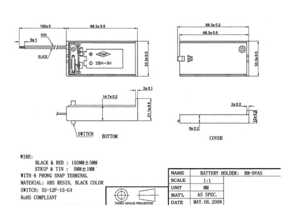 Unleash reliable power with the 9V-cell battery holder, engineered for seamless integration into your projects. Designed for durability, it securely encases one 9V battery, ensuring consistent performance.