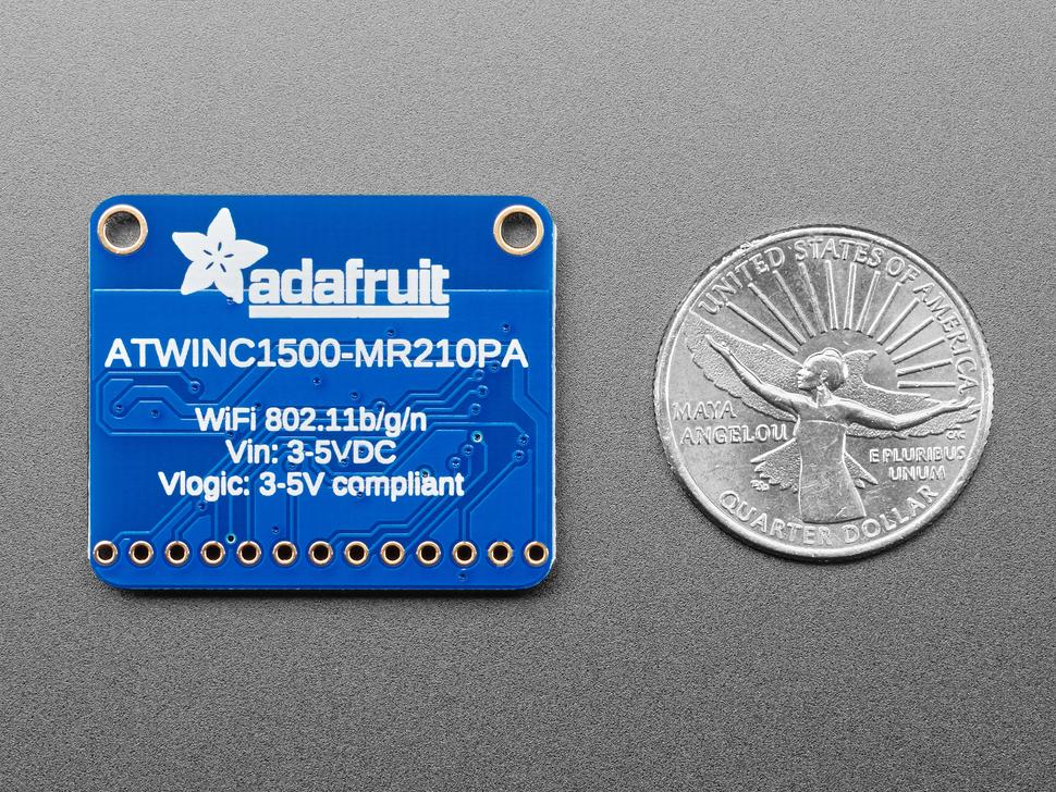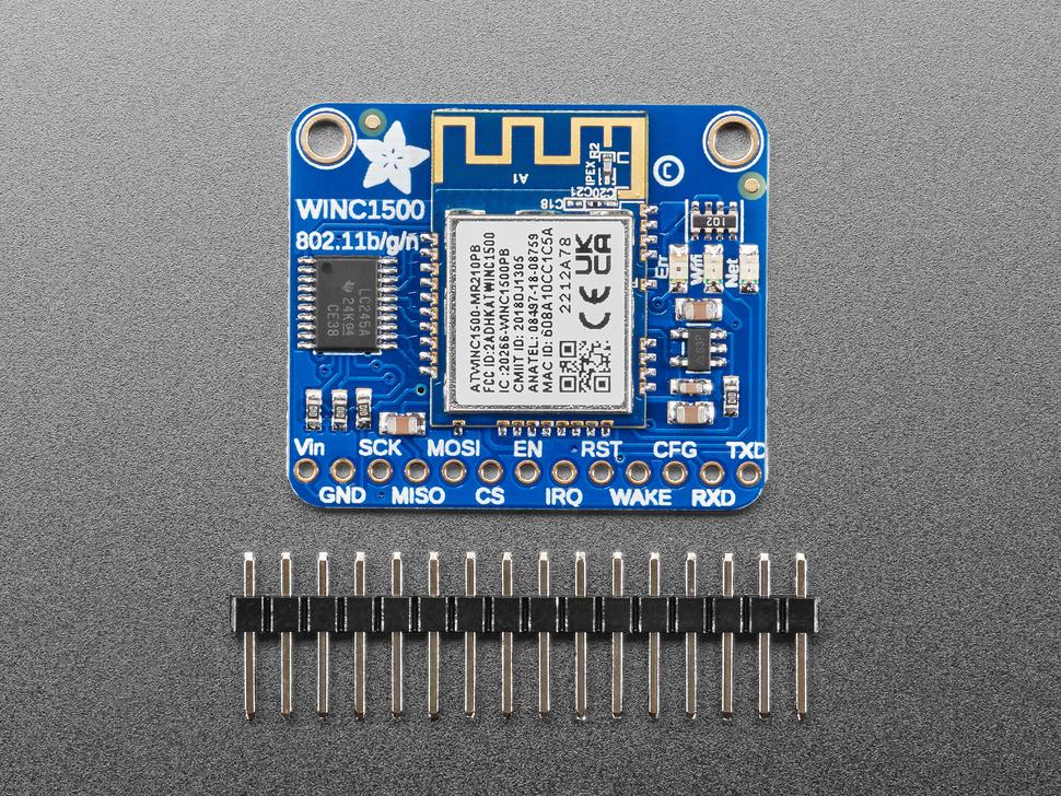 The Adafruit ATWINC1500 WiFi Breakout utilizes SPI communication, requiring only about 6 wires to get connected swiftly. Currently, the Atmel-supplied library functions effectively with Arduino M0's and M4s; however, it's not compatible with Uno (328P) and potentially other Arduinos.