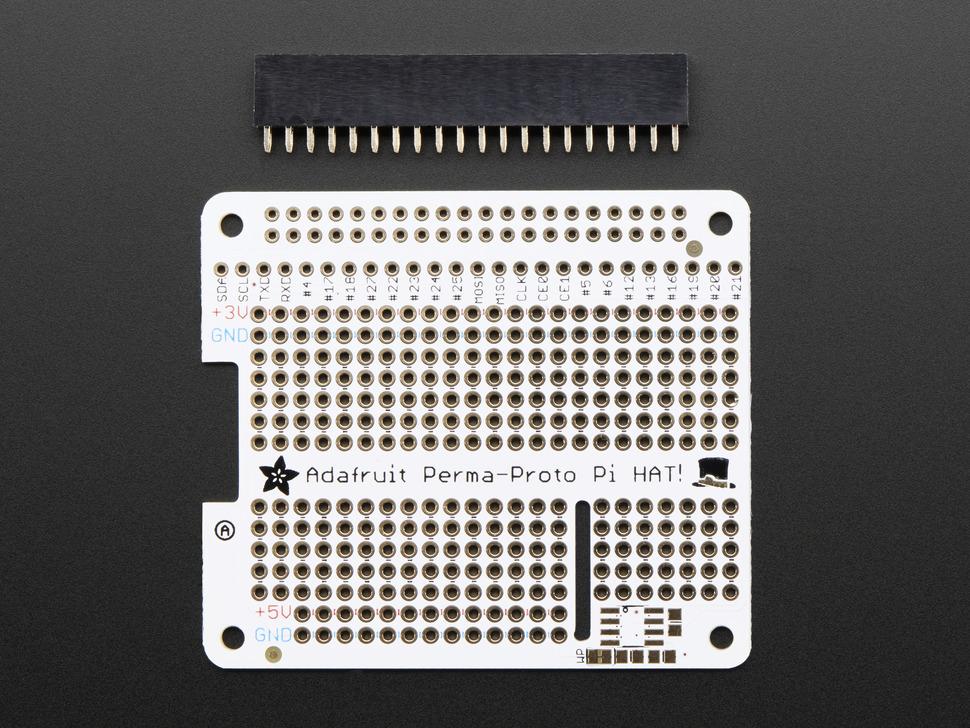 Design your own Pi HAT and integrate custom circuitry with ease using this prototyping HAT kit compatible with the Pi Zero, A+, B+, Pi 2, Pi 3, and Pi 4. This kit includes a Perma-Proto inspired daughter board, featuring a grid of 0.1" soldering holes to attach chips, resistors, LEDs, and more.