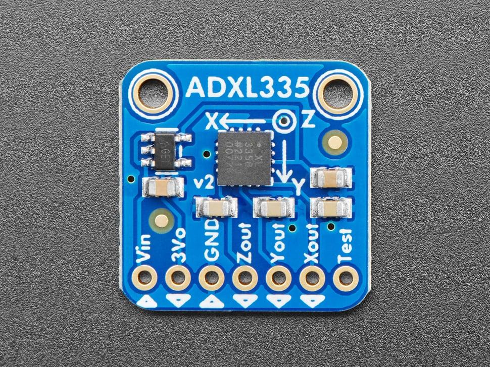 The ADXL335 from Analog Devices, renowned for high-quality MEMS technology, powers this breakout. With a ratiometric output, expect precise readings: 0g at 1.65V, -3g at 0V, and 3g at 3.3V, allowing for full scaling between these points. The VCC accepts up to 5V input, regulating output to 3.3V.