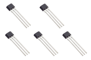 A set of 5x AH3503 hall effect sensors. These sensors measure magnetic fields created by electricity. This allows these sensors to be used to detect magnets or measure the amperage of a circuit. With a fixed current strength and magnetic field, it is even possible to detect metal, because it interferes with the magnetic field.