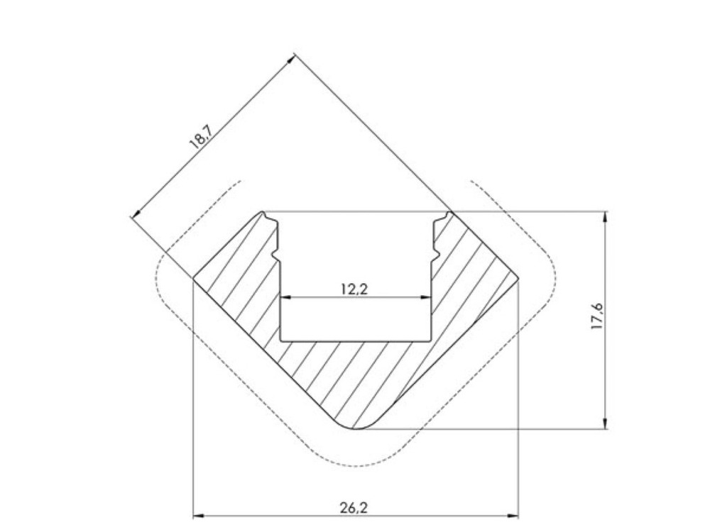 The ALU-45 is a sleek, anodized aluminum profile designed for LED strips, perfect for creating indirect lighting at a precise 45° angle.