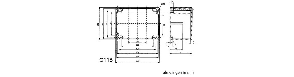 The G100 series includes internal studs for horizontal PCB mounting or grounding connections, with slots for vertical PCB installation. Lid fastening screw holes come with threaded inserts, and the cover bolts are flush, ensuring secure and streamlined closures.