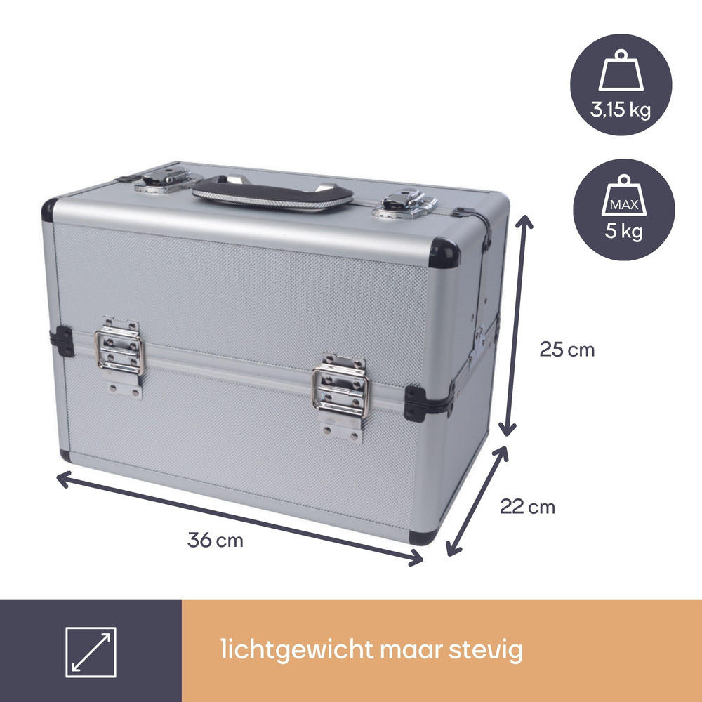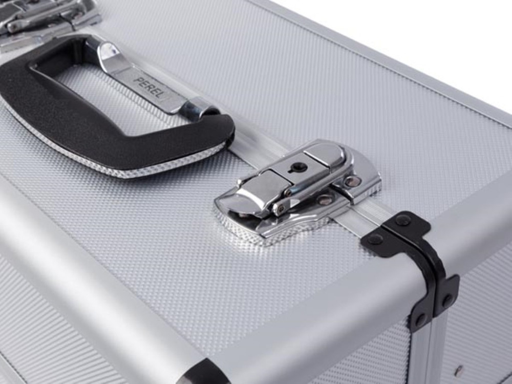The aluminium tool case measuring 360 x 220 x 250 mm offers a storage capacity of 19.8 liters, perfect for keeping various tools organized.