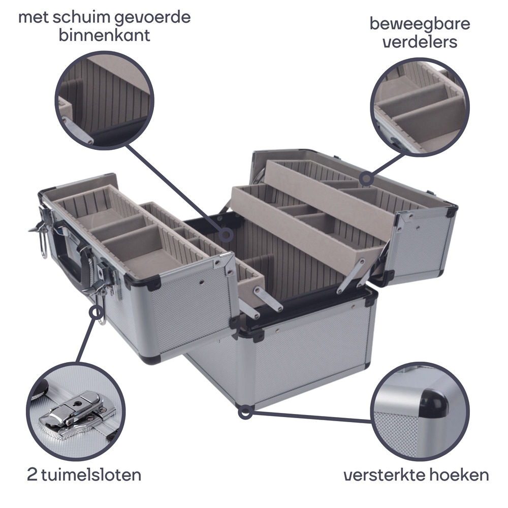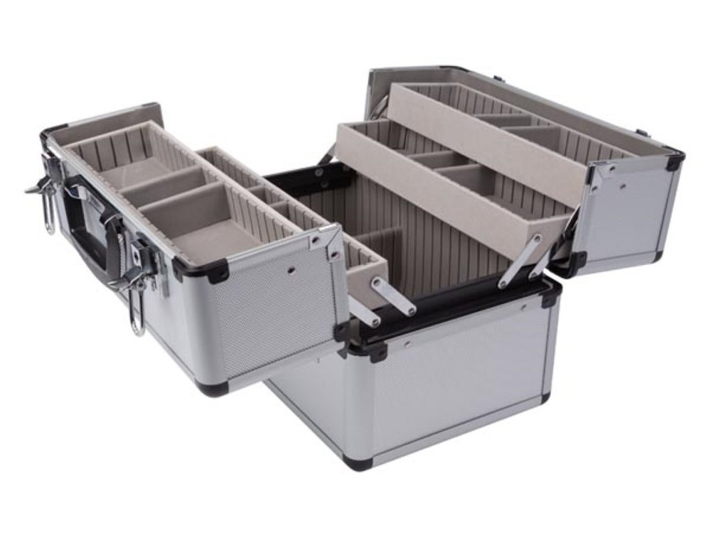For added security, the case features dual key locks, safeguarding your tools against unauthorized access. It's an ideal solution for those seeking reliable and flexible storage options.