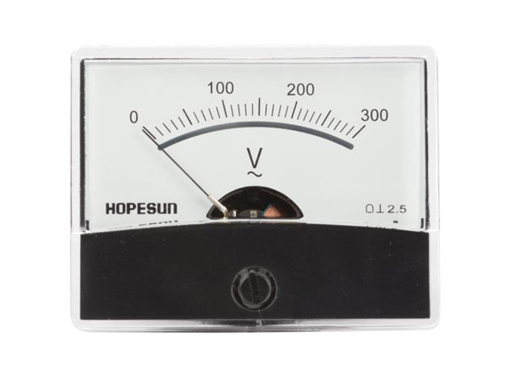 Analoge paneelmetervoor AC spanningsmetingen tot 300V AC, voorzien van een compacte 60 x 47 mm behuizing. De draaispoelpaneelmeters zijn ideaal voor toepassingen in elektronische instrumenten en schakelborden, evenals voor gebruik in voertuigen of andere industriële omgevingen.