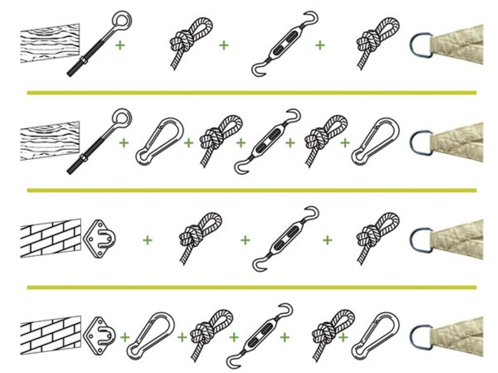 Benefits include easy installation, durable materials resistant to weather conditions, and compatibility with various sun sail sizes. Use it to transform any outdoor space into a comfortable, shaded retreat. Each component is designed for long-lasting performance, ensuring peace of mind and durability.