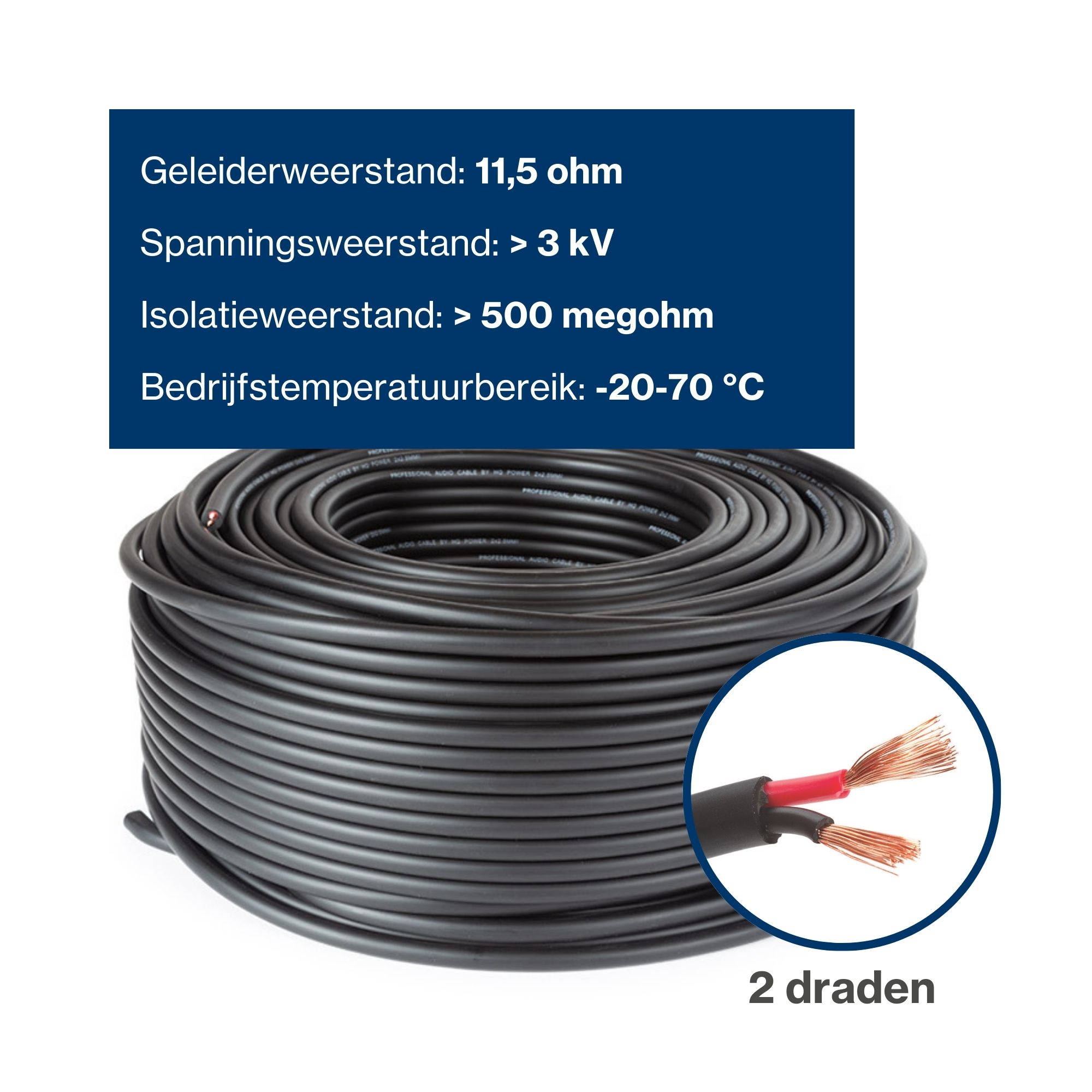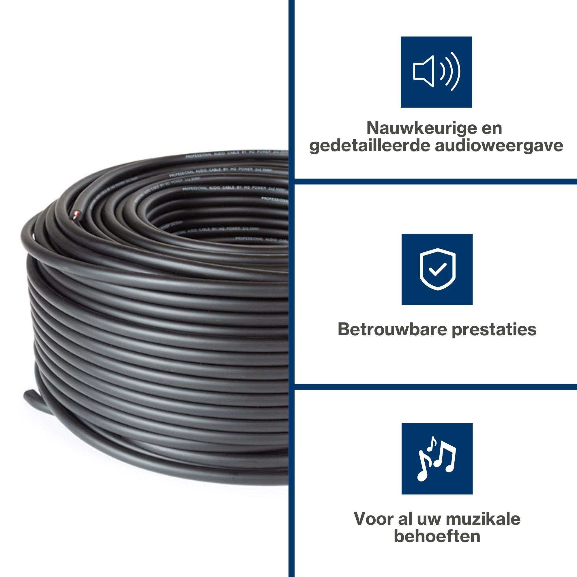 Experience top-of-the-line sound quality with our black speaker cable, designed to enhance your audio system's performance. With a dual 2.50 mm² configuration, this 100-meter cable ensures robust signal transmission.