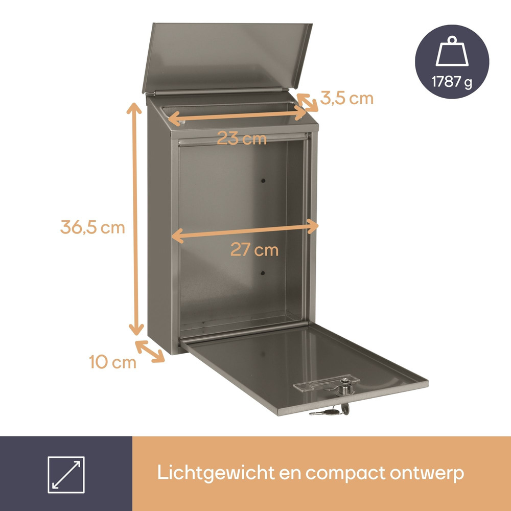 BRIEVENBUS BERLIJN INOX is a seamlessly designed mailbox offering optimal convenience with its sleek stainless steel finish. Measuring 27 x 36.5 x 10 cm, it fits effortlessly in any home exterior, promising durability and style.