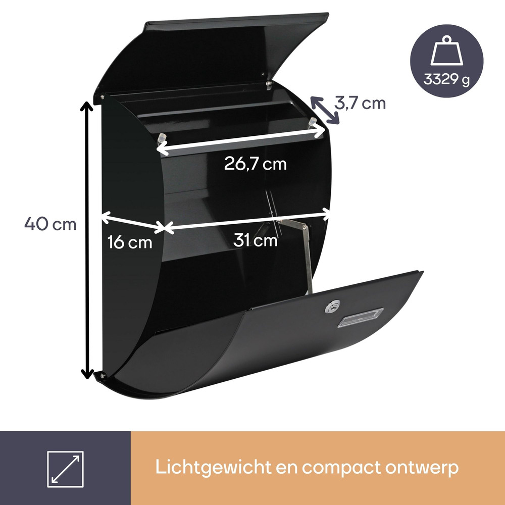 Crafted with precision, the BRIEVENBUS in sleek black adds sophistication to any exterior. Measuring 40 x 31 x 16 cm, its robust structure ensures durability against harsh weather.