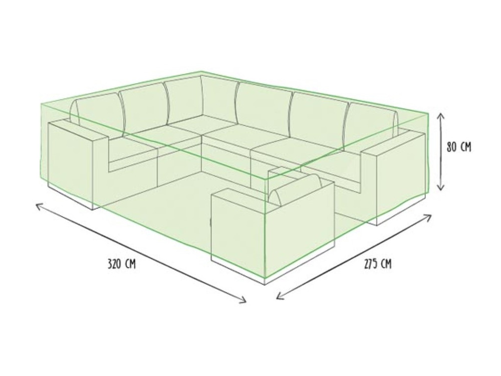 The buitenhoes voor loungeset offers robust protection with its 320x275x80cm dimensions, ensuring your outdoor furniture remains immaculate in all weather conditions.