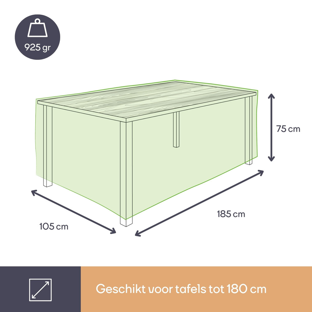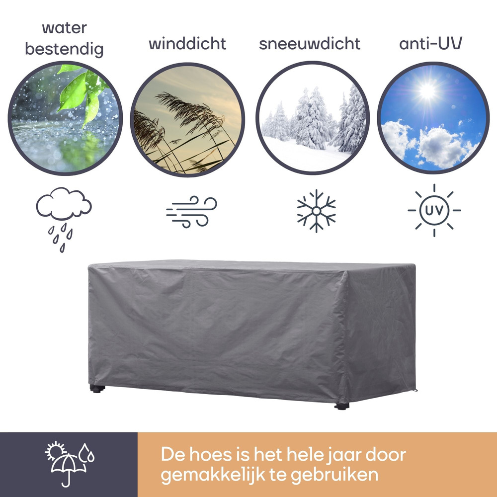 Experience unmatched protection with the Buitenhoes, designed for tables up to 180 cm. Crafted from premium weather-resistant material, it shields your furniture from rain, snow, and UV rays, ensuring longevity and beauty.