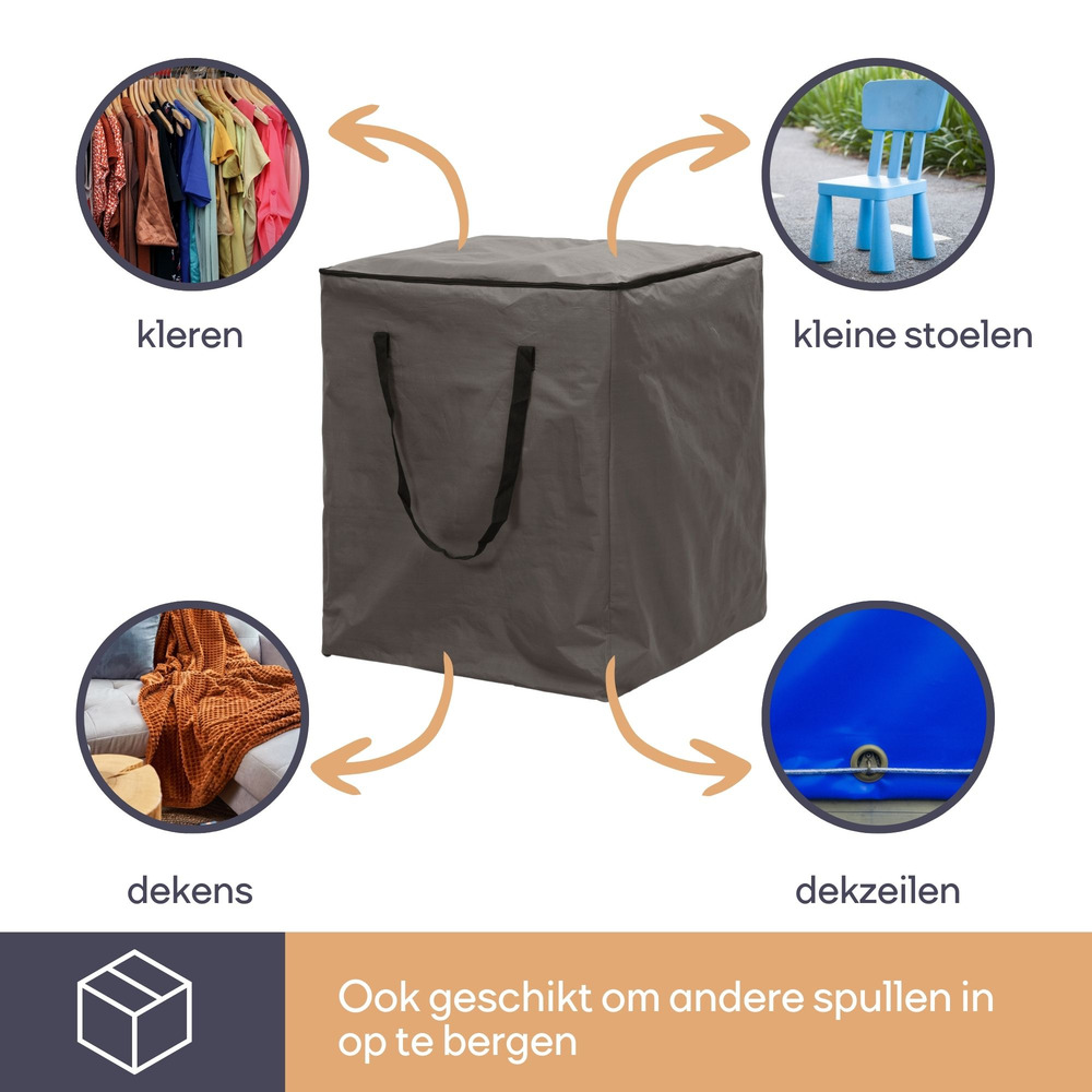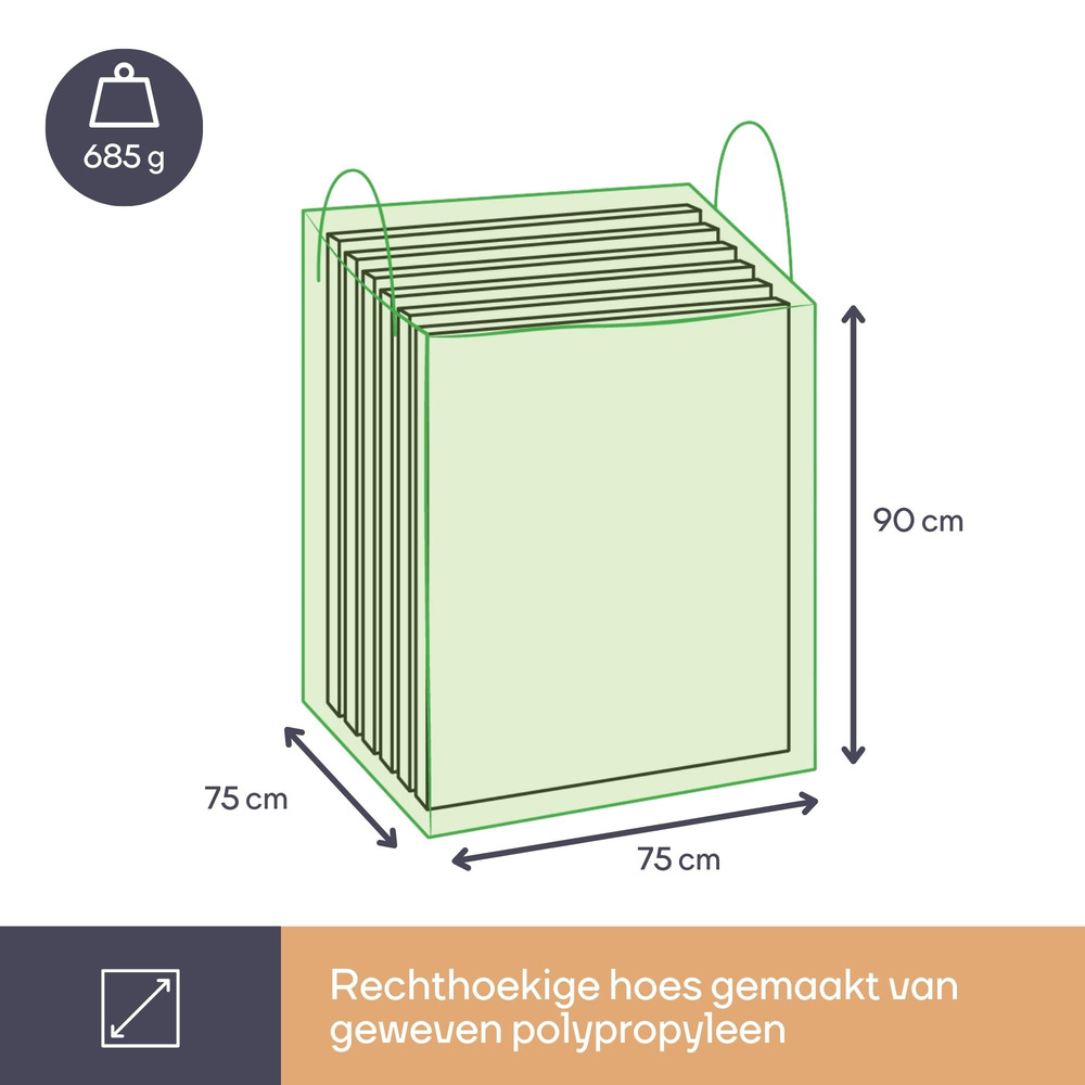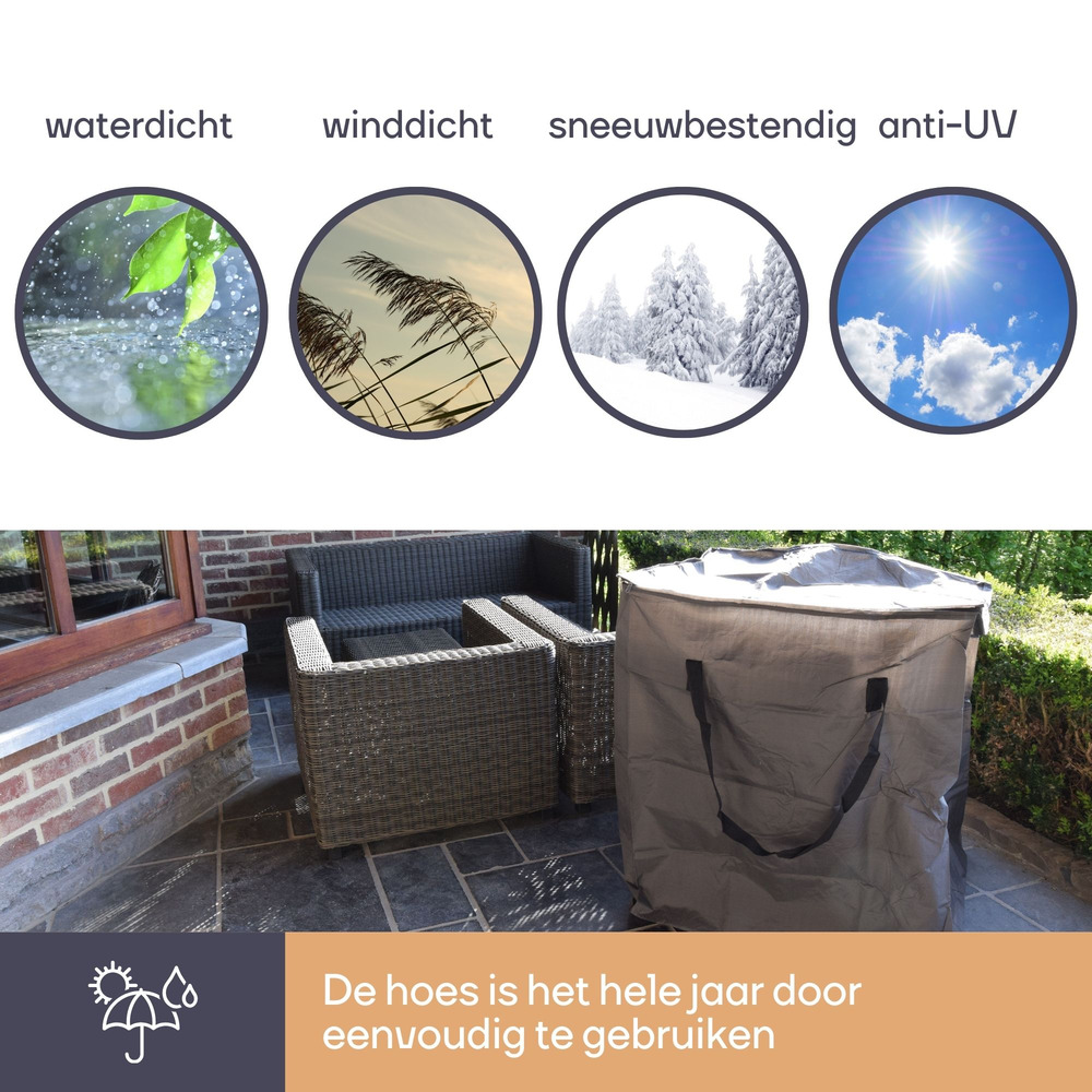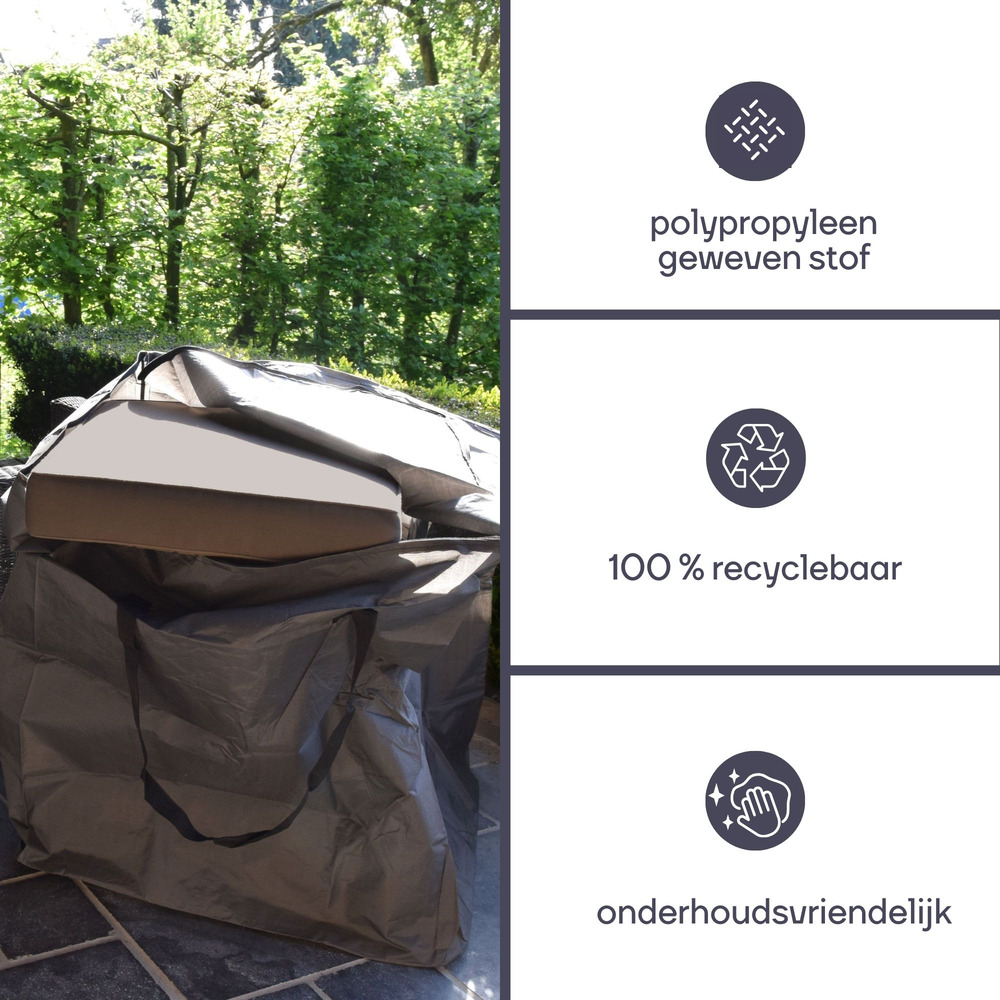 Protect your lounge cushions with the Buitenhoeszak, designed to fit dimensions of 75x75x90 cm. This cover ensures durability and longevity with its weather-resistant material, safeguarding against rain, dust, and UV rays.