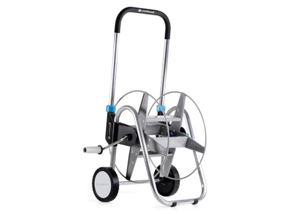 The Cellfast metalen slangenwagen Explorer is engineered for durability with its robust metal frame, making garden hose management effortless. It accommodates up to 60 meters of a 1/2 inch hose, offering ample reach for extensive gardens.