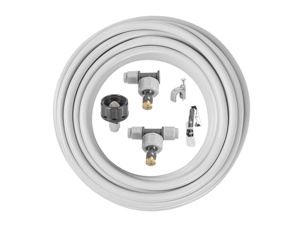 Installation is straightforward, similar to assembling a simple jigsaw puzzle, eliminating the need for complex tools or expertise. Extend your outdoor living and enhance plant growth with this innovative water misting solution.