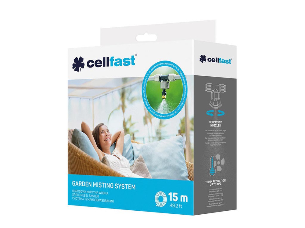 The Cellfast tuinvernevelingssysteem transforms outdoor areas into cool oases. With a length of 15 meters, it efficiently covers large gardens and terraces.