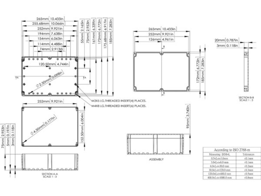 Inside, vertical PCB mounting slots are conveniently placed, while brass inserts in the base plate offer horizontal PCB mounting options. Engineered to meet both IP65 or IEC529 and NEMA 4 standards, this box is the epitome of splash-proof and dust-tight protection.