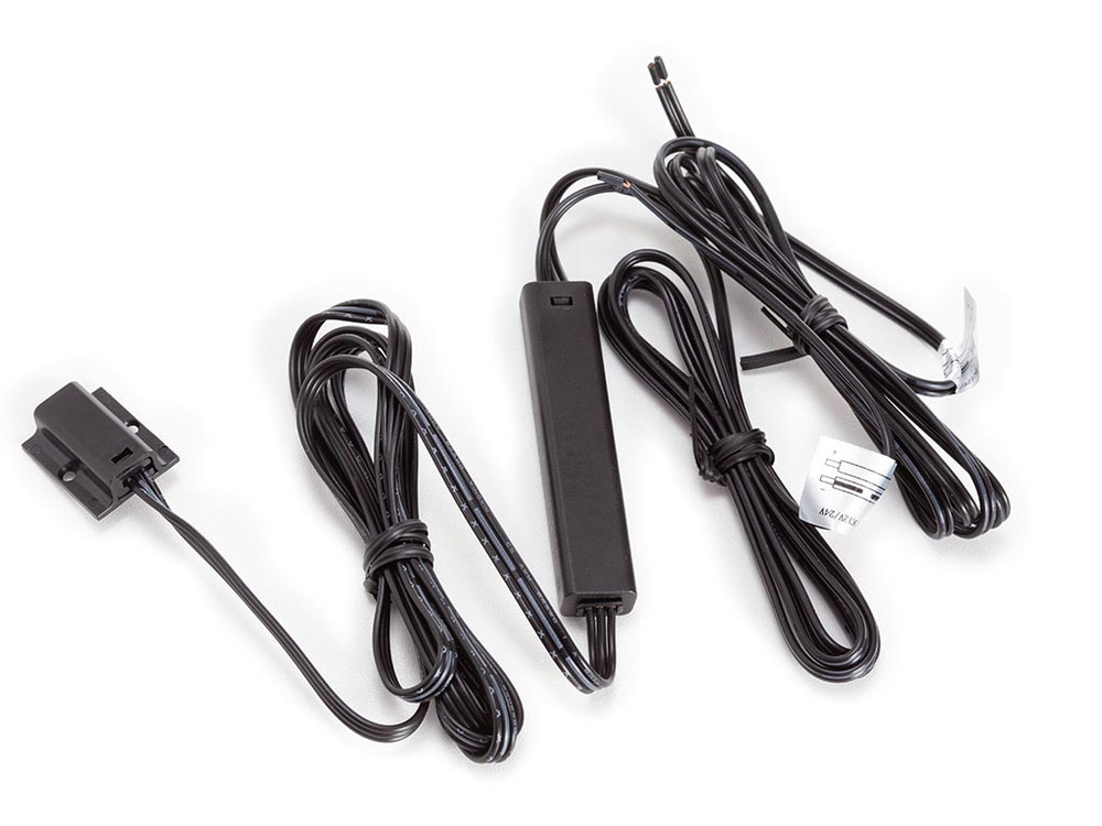 Deursensorschakelaar - opbouwmontage - 12V/24V. Deze compacte deursensor schakelt automatisch de LED-verlichting in je kasten of kleedkamer in. Monteer deze opbouwsensor gewoon in de kast. Je kunt de elektronische besturingsmodule gemakkelijk wegwerken in een voorzetwand.