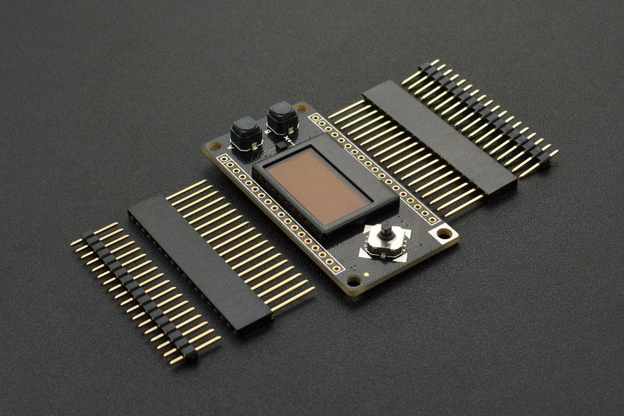 Analog directional keys complement the experience with precision controls, while two independent digital keys labeled A and B offer immediate interaction. Each feature is thoughtfully designed to harmonize with your technical landscape, transforming any ordinary project into an extraordinary endeavor. This OLED Shield is your gateway to a simple yet sophisticated user interface, ready to elevate the potential of your ESP8266 or ESP32 projects. It's like holding a world of innovation right at your fingertips.