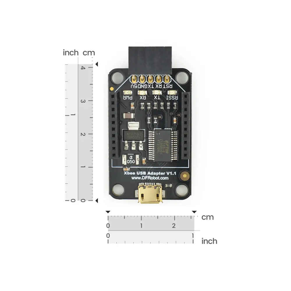 Whether you're aiming to configure XBee or Bluetooth modules, the adapter facilitates smooth wireless data transmission via a USB cable, bridging the gap between your PC and controller or development board. Enabling wireless upload of your programs and conducting real-time data transmission becomes a breeze, thanks to the robust FTDI232 USB-UART converter chip that ensures data stability and reliability, just like a steadfast bridge across a bustling river, allowing for safe and uninterrupted passage.