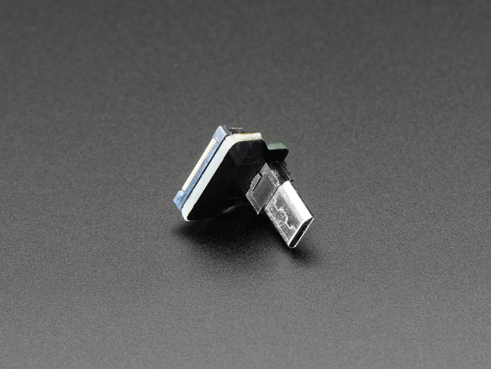 This version features a USB Right Angle Micro B Plug Up design. Additional 'down' and 'straight' versions are also available for varied configurations. Please note that ribbon cables and other adapters are sold separately.