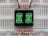 Display elegantly, 012345678 or 9! Gaze, hypnotized, at ABCDEFGHIJKLM - well it can display the whole alphabet. You get the point. This is a nice, bright 14-segment alphanumeric display that can show letters and numbers in a beautiful pure green hue. It's super bright and designed for viewing from distances up to 23 feet (7 meters) away.