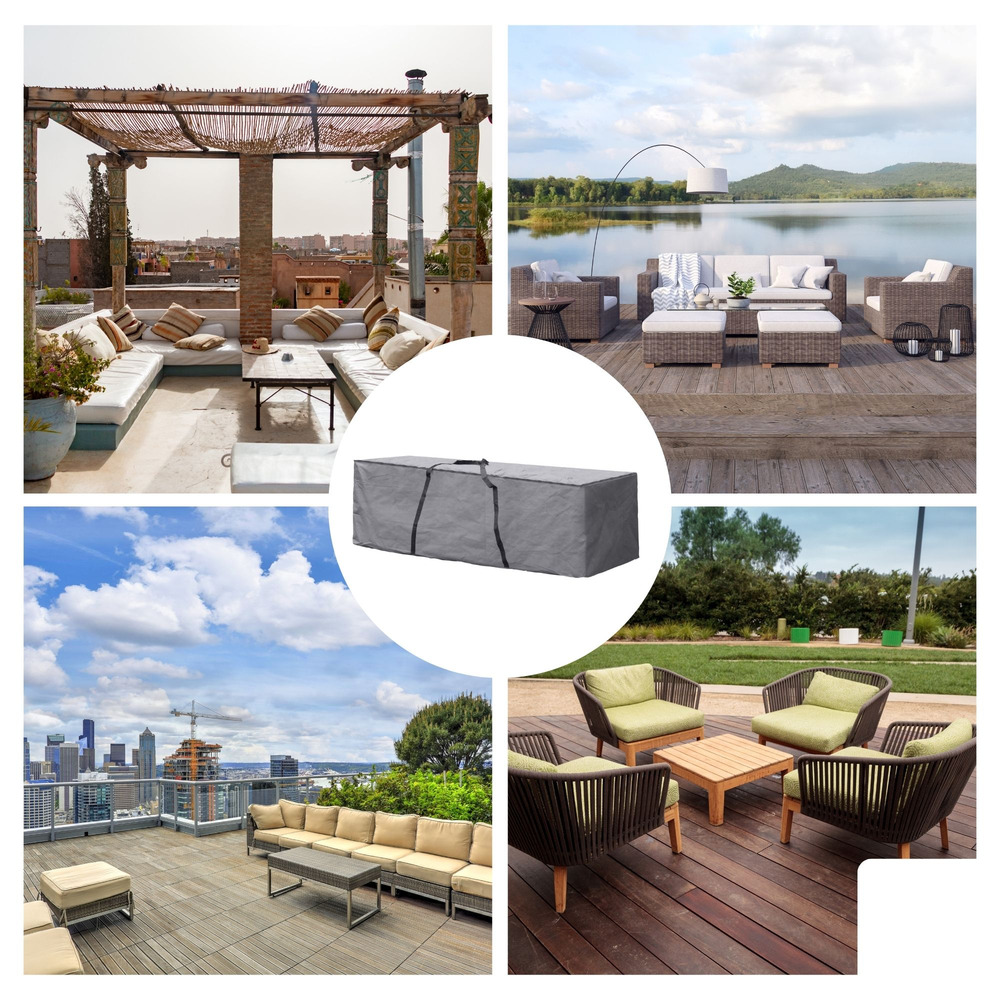 Crafted from high-quality, water-resistant material, it effectively shields against rain, dust, and UV rays, prolonging the life of your cushions. Reinforced seams and robust zippers ensure long-lasting performance.