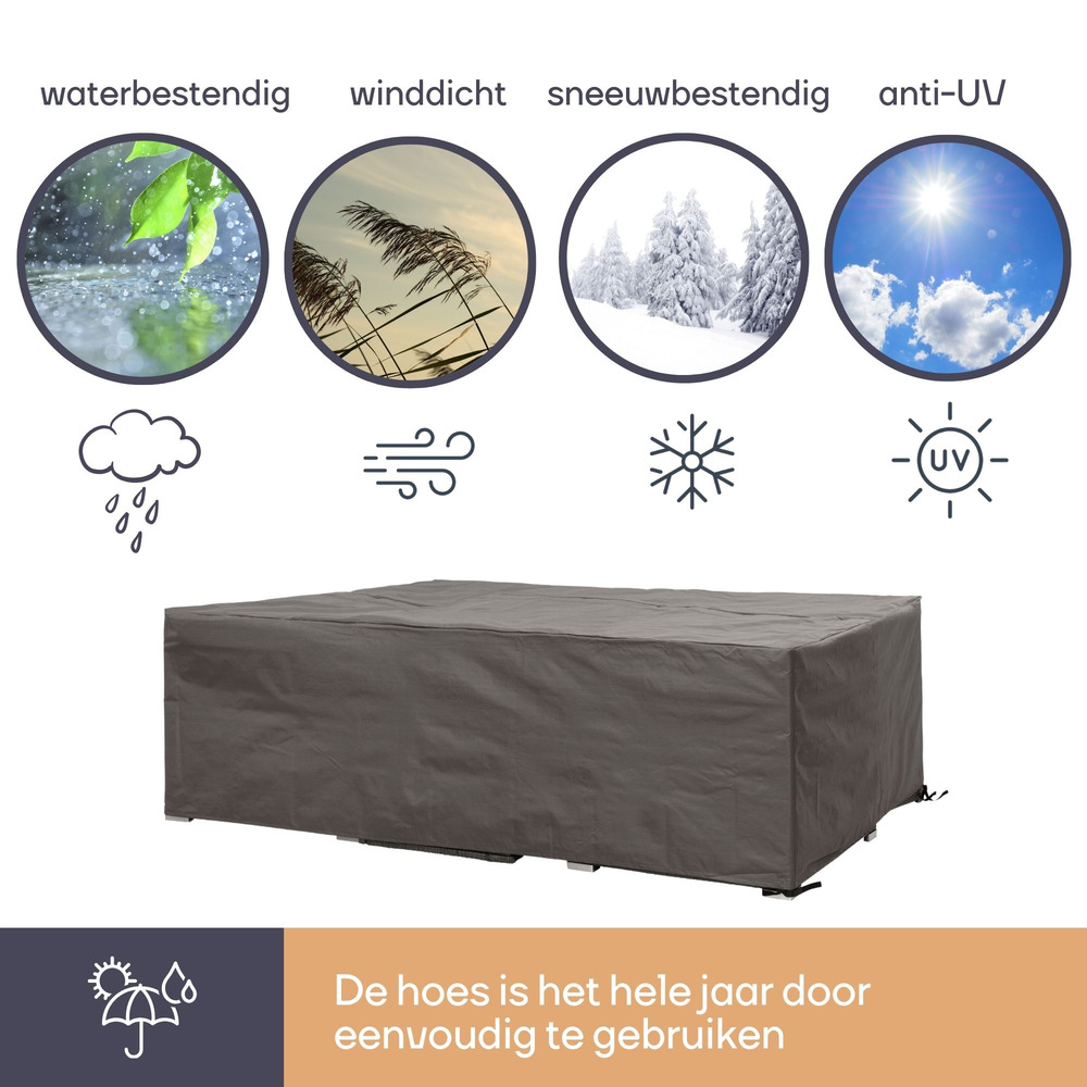 Shield your outdoor lounge set with a durable, weather-resistant cover measuring 250x250x75cm. This protective layer fends off rain, sun, and dust, extending the life of your furniture.