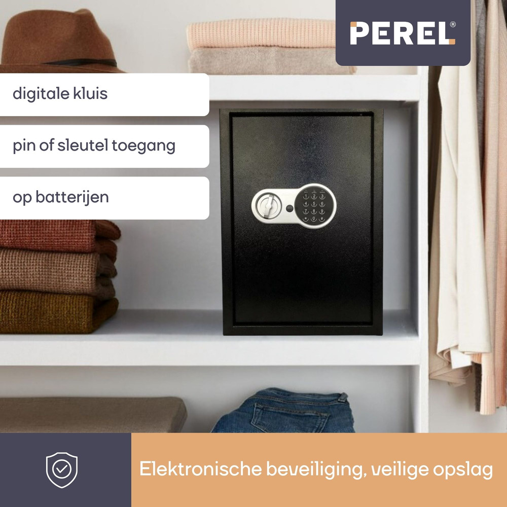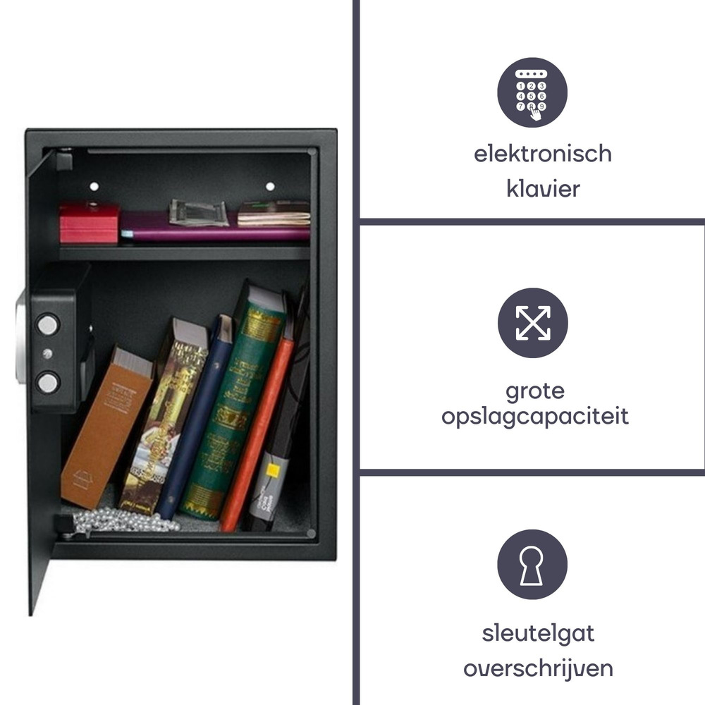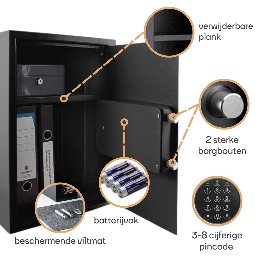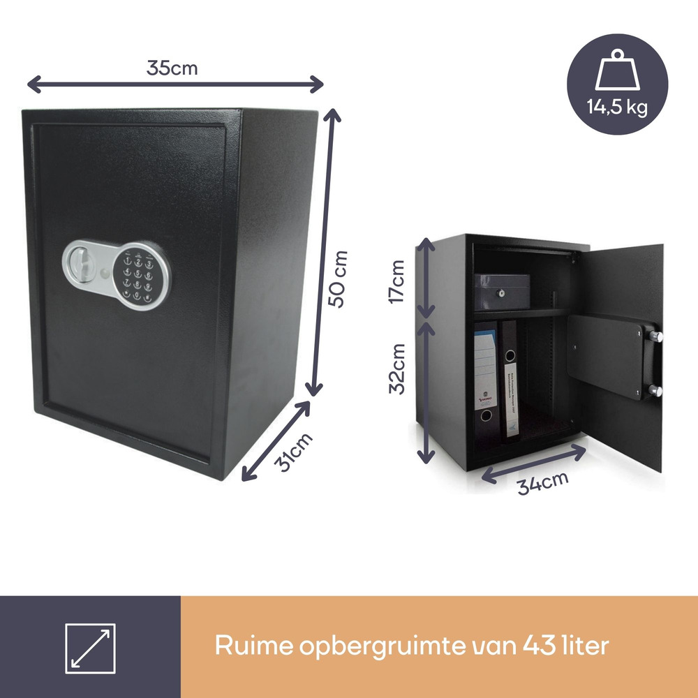 Secure your valuables with ease using this electronic safe, boasting dimensions of 50 x 35 x 31 cm and a capacity of 43 liters. Engineered for superior protection, it features a robust construction that resists tampering.