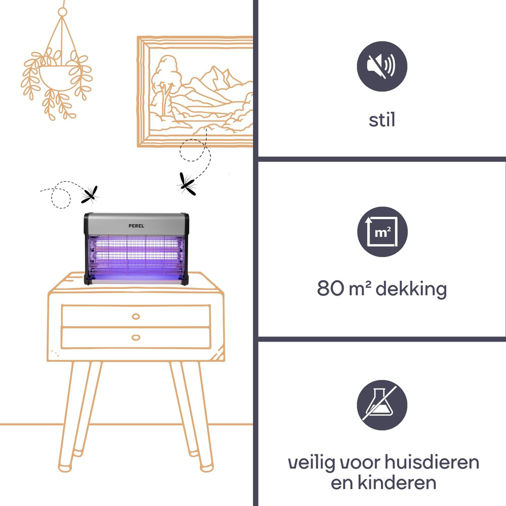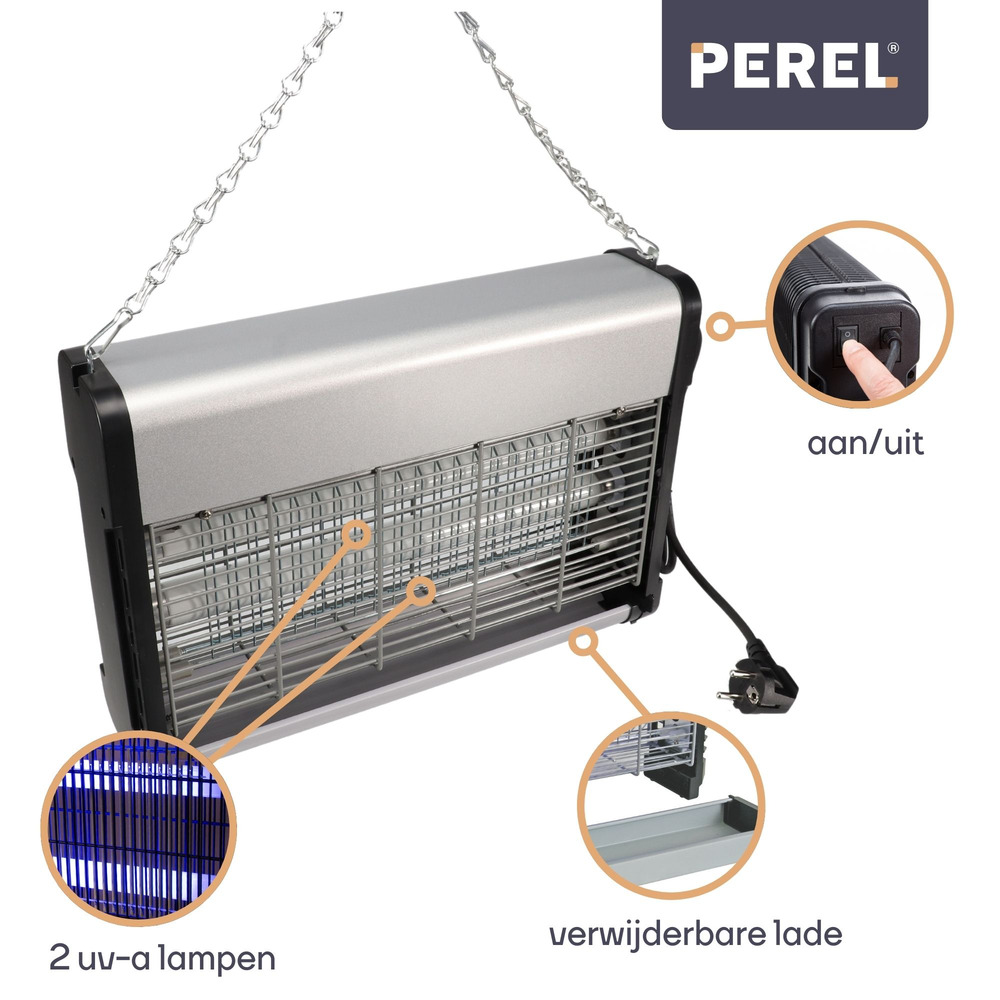 Experience a seamless defense against flying nuisances with the Elektrische Insectenverdelger, equipped with two powerful 10 W UV bulbs.
