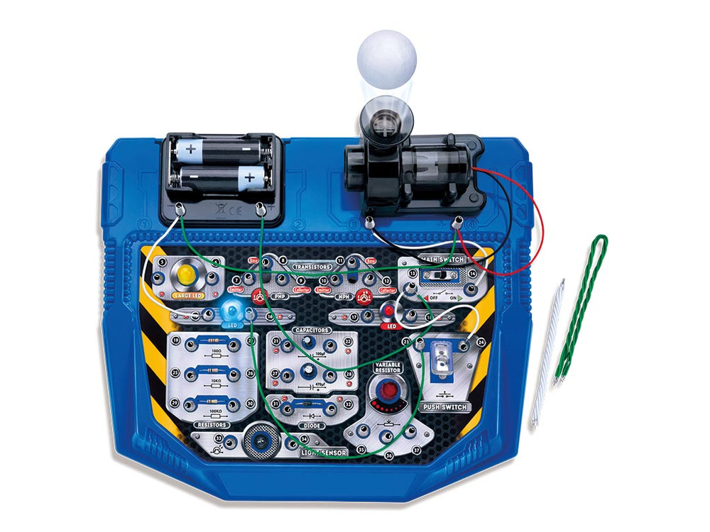 This kit includes everything you need to construct projects from dynamic light sensors to sound-activated alarms. Use the detailed instructions to easily construct circuits and see real-time applications of electronic principles.