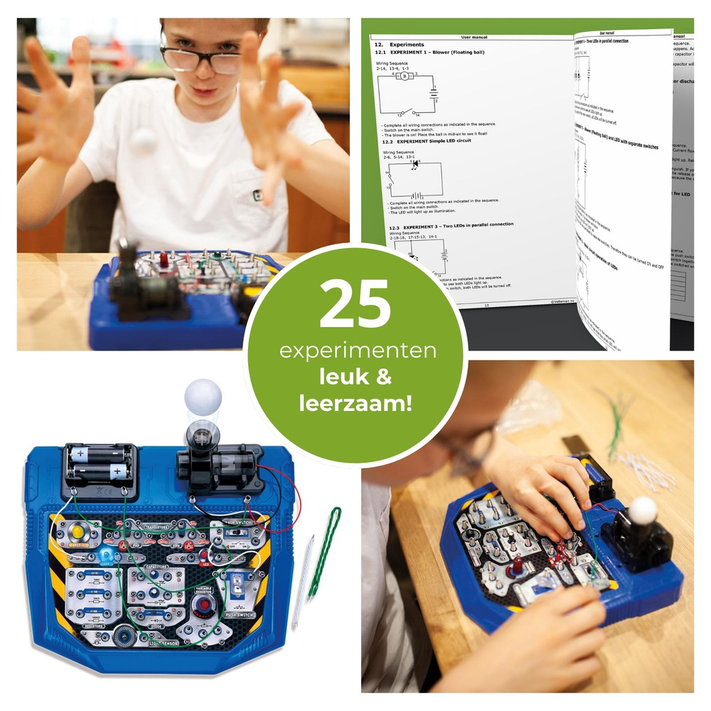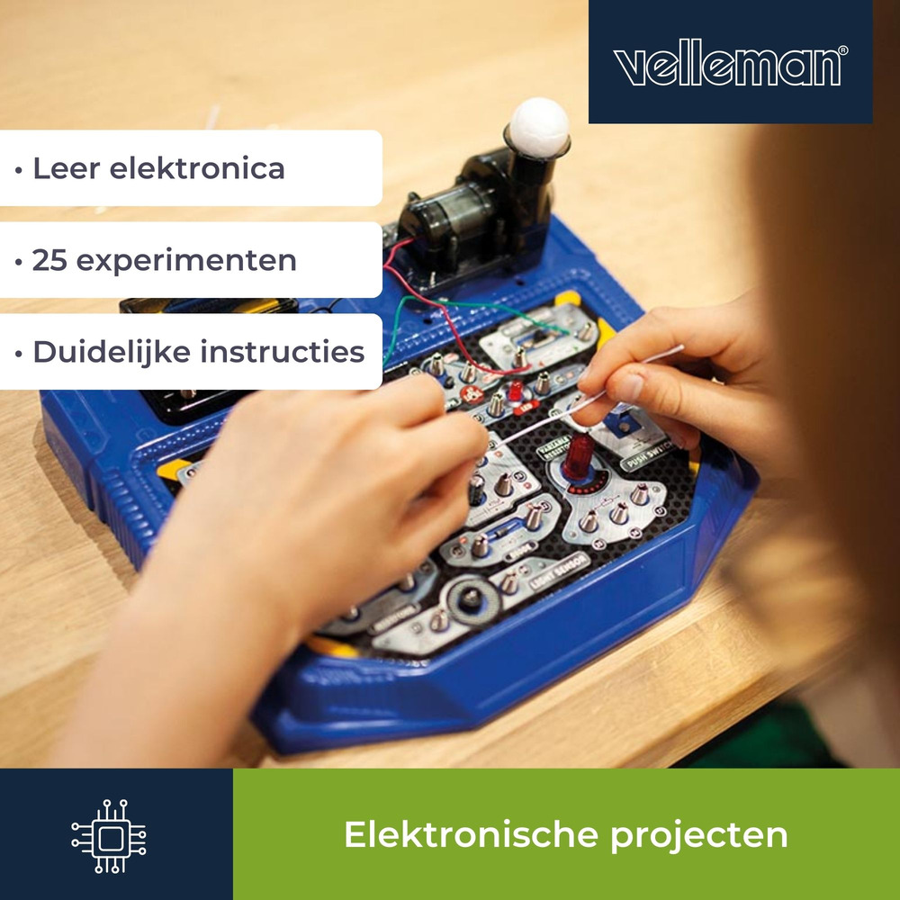 Unleash your creativity with the Elektronische projecten kit, featuring 25 engaging experiments to explore and understand electronics at your own pace.