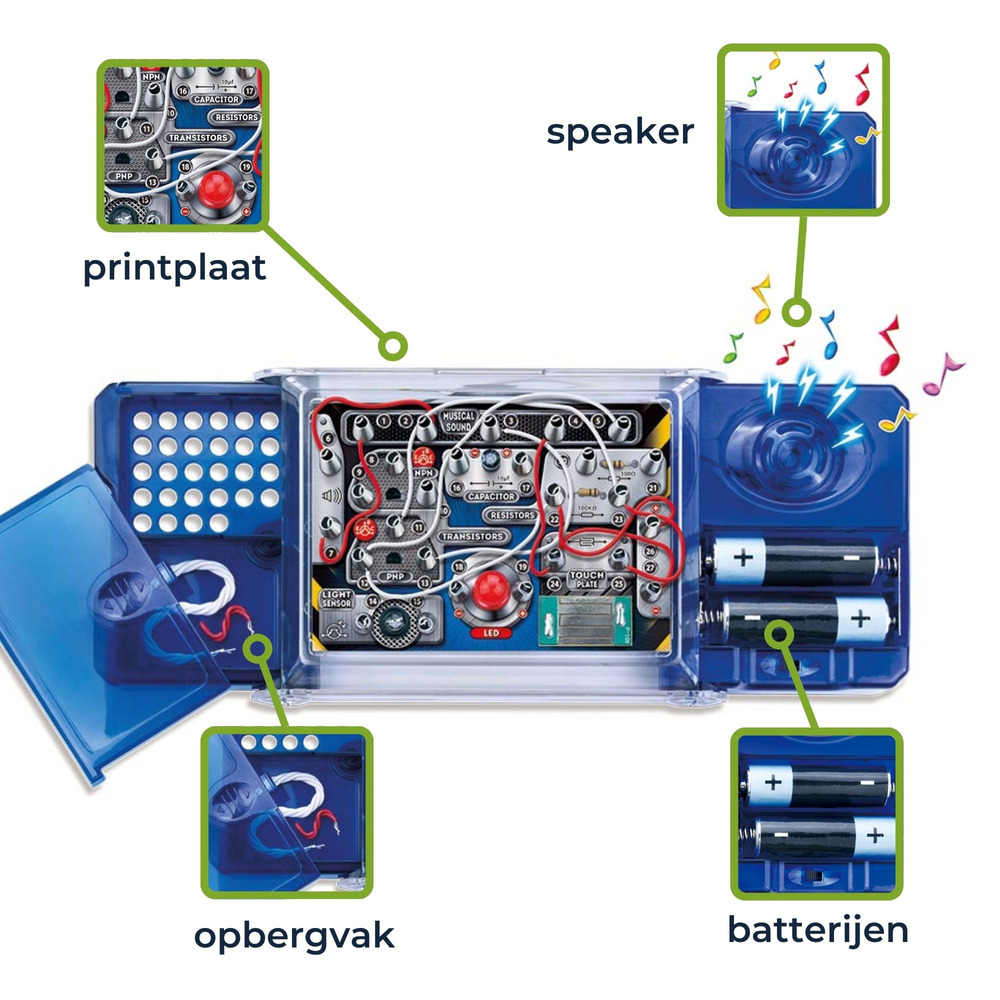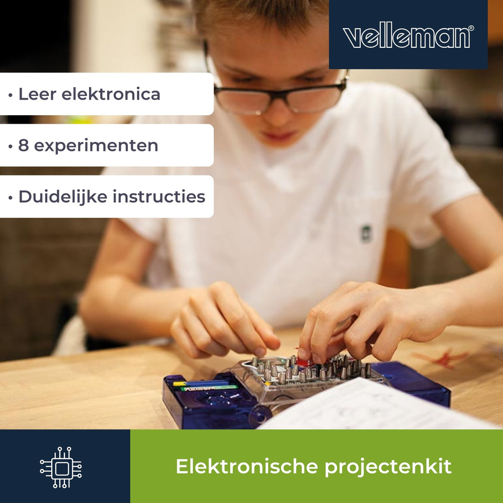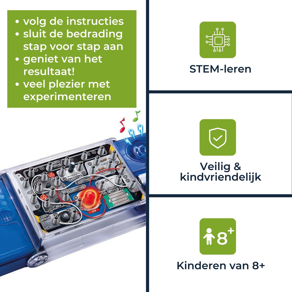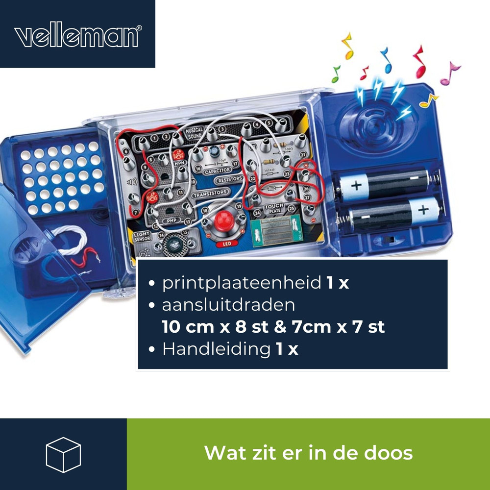 Experience the Elektronische projecten kit, featuring 8 engaging experiments that merge the wonders of LED and music.