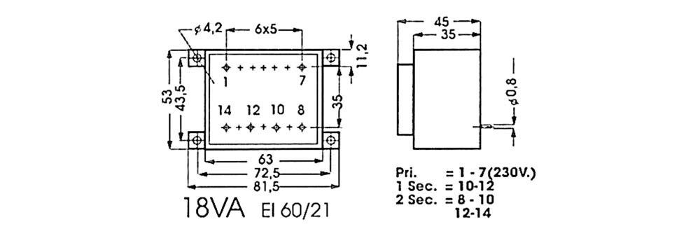 This encapsulated transformer delivers a robust 18VA power output with dual 6V secondaries, each capable of supplying 1.667A. Engineered for efficiency and reliability, it's perfect for powering low-voltage devices, ensuring stable operation in diverse applications.