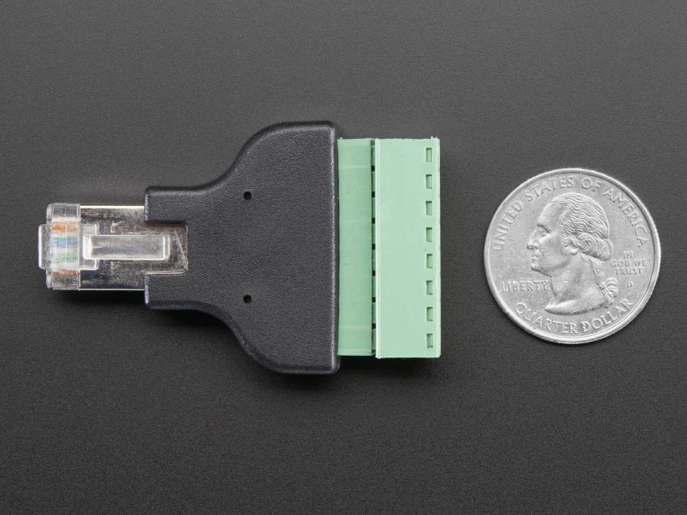 Seamlessly bridge connections with this Ethernet (RJ45) Male Plug Terminal Block. It's fashioned for quick interfacing, featuring a standard RJ45 Ethernet plug on one end and a screw terminal block on the other. Ideal for basic power and data distribution tasks without the need for soldering.