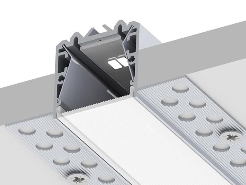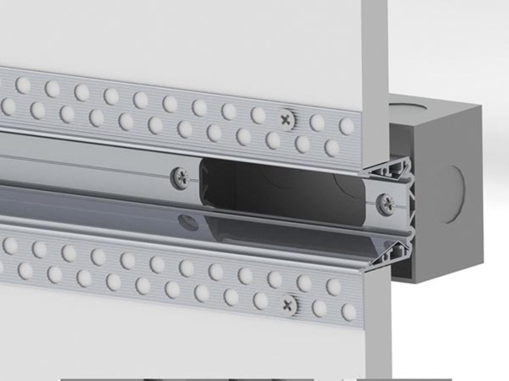 Gipsplaatprofiel RPL135FL US is een smal en hoogwaardig ruw aluminium profiel voor naadloze integratie in gipskartonplafonds en wanden. Het biedt kant-en-klare hoekmodules, montagerail voor aansluitdozen en speciale openingen voor eenvoudig installatiegemak. Dankzij het innovatieve ontwerp zijn reflectoren van hoog gepolijst aluminium geïntegreerd, waardoor de lichtdistributie tot wel 20% verbetert.