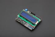 This is a very popular LCD Keypad shield for Arduino and other variants. It includes a 2x16 LCD display and 6 momentary push buttons. Pins 4, 5, 6, 7, 8, 9 and 10 are used to interface with the LCD. Just one Analog Pin 0 is used to read the five pushbuttons. The LCD shield supports contrast adjustment and back-lit on/off functions. It also exposes five analog pins with DFRobot color code for easy analog sensor plugging and display. The on board LED indicates power on.