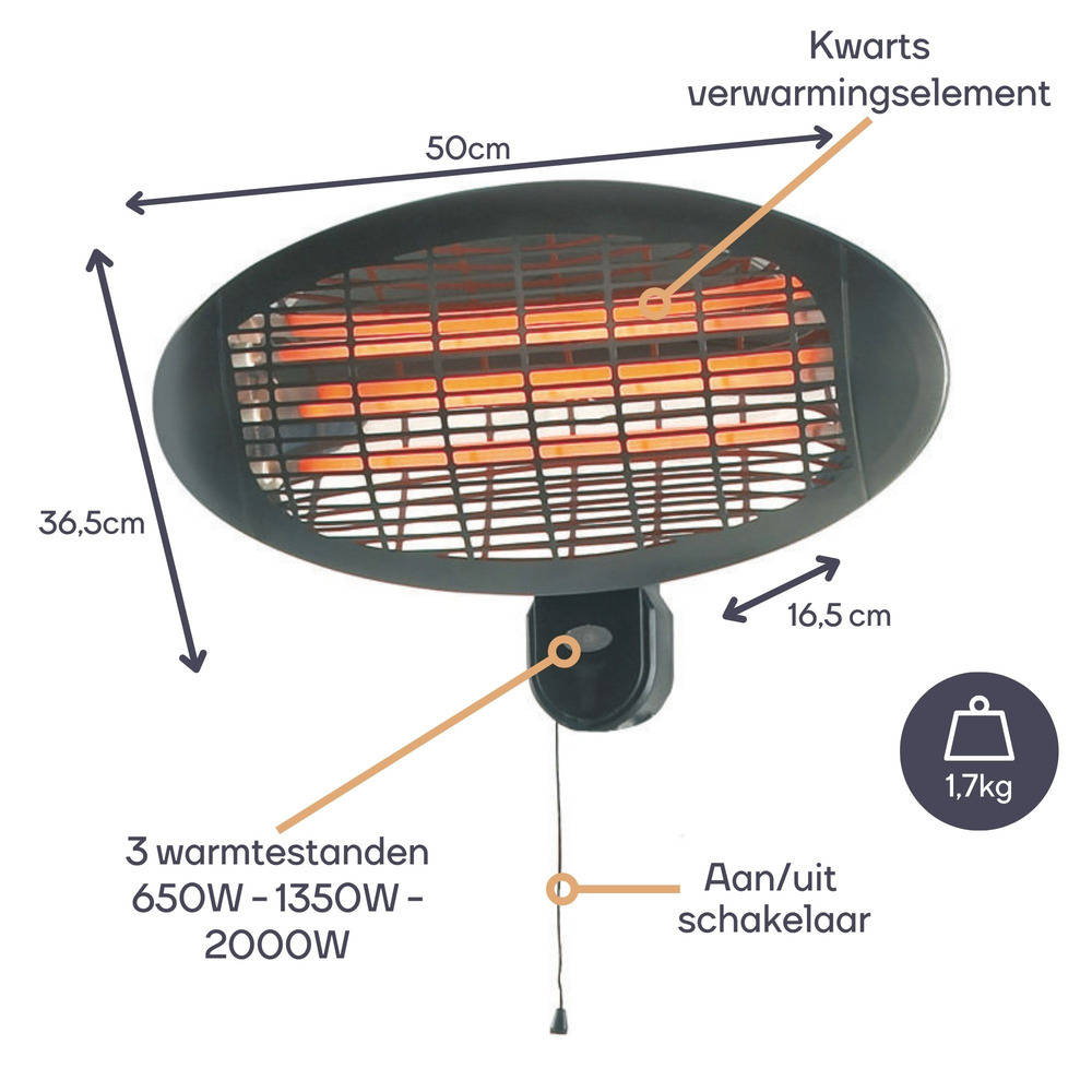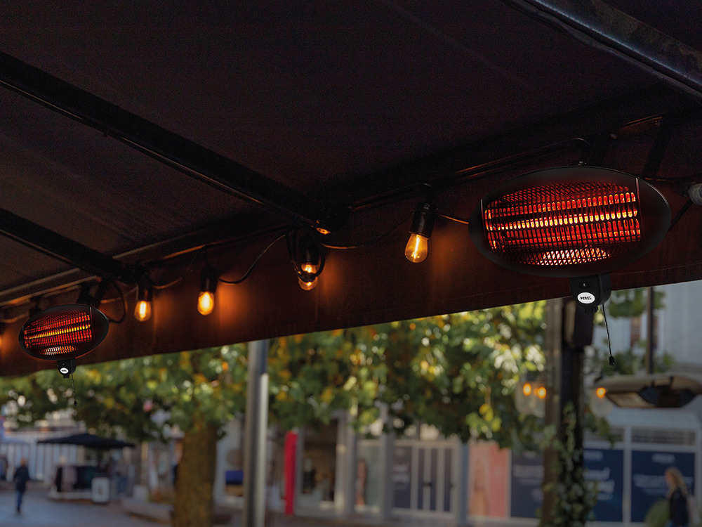 Experience outdoor comfort with our hanging Terrasverwarmer, boasting a powerful 2000 W output. This sleek, overhead heater seamlessly integrates into any outdoor setting, ensuring warmth during chilly evenings.