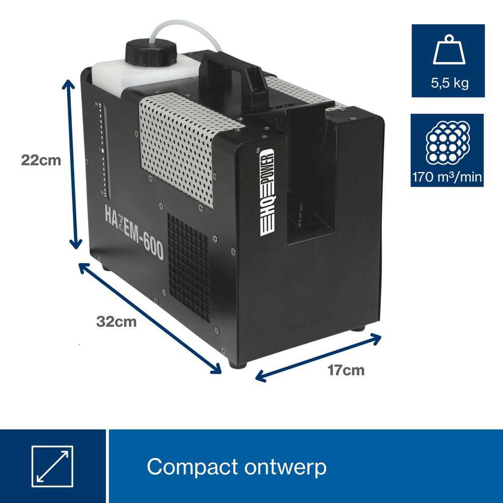 Generate mesmerizing atmospheres effortlessly with the HAZER 600 W. This compact device is designed for seamless operation, creating a continuous haze to enhance lighting effects and ambiance.