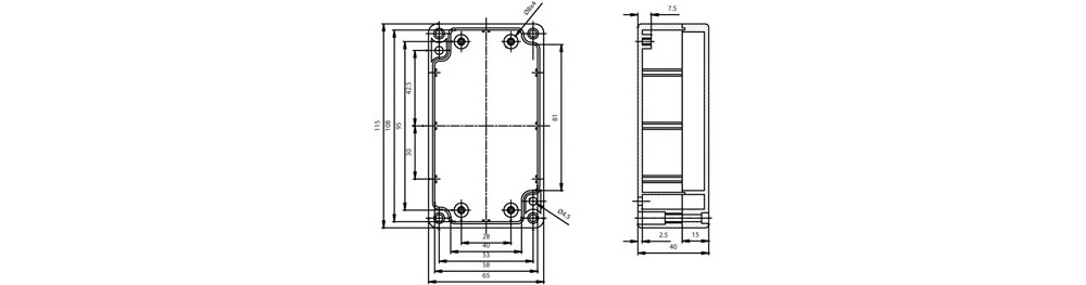 Internal slots facilitate vertical PCB mounting, adhering to IP65 and NAMA4 standards for dust and splash protection. Brass threaded inserts in the base offer options for horizontal PCB mounting and connector installation, enhancing versatility.